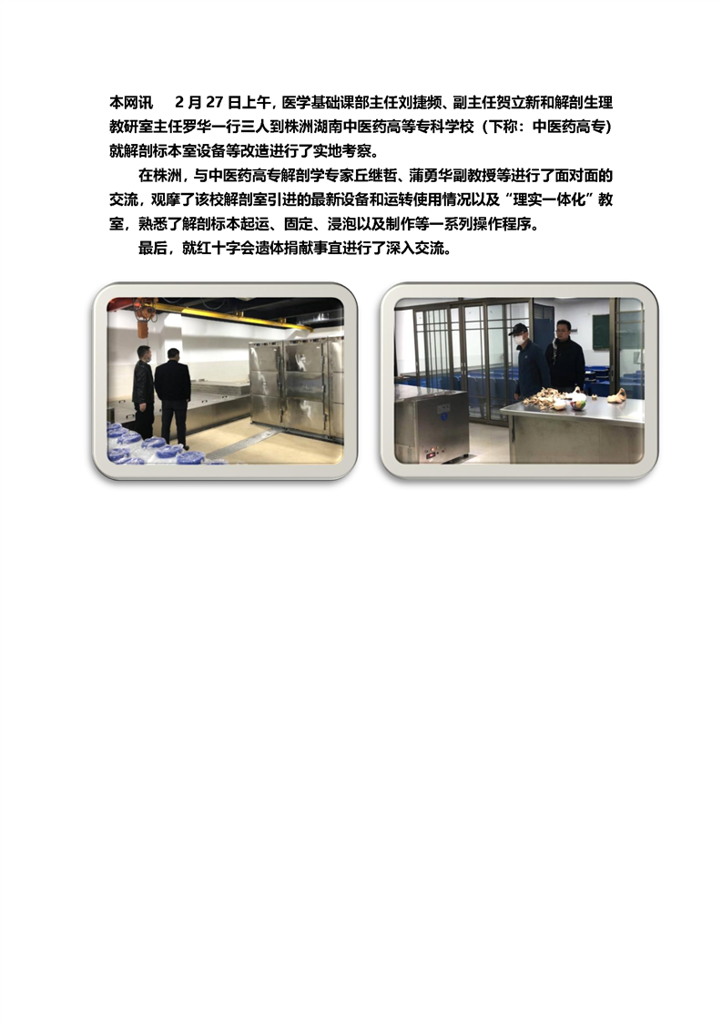 医学基础课部到株洲湖南中医药高等专科半岛平台解剖标本室进行实地考察