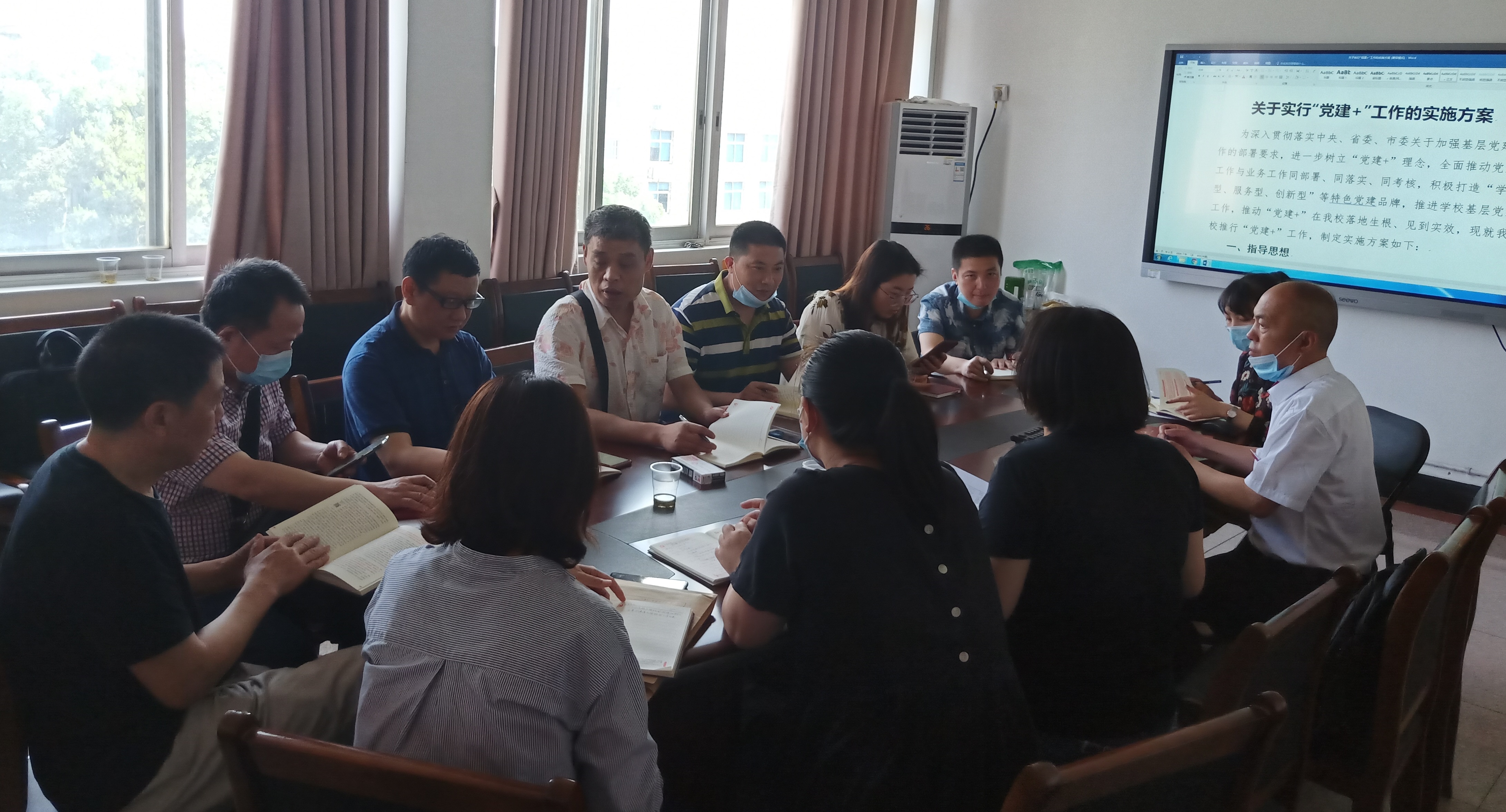 2020-5-19 下午两点半课部全体教师进行政治学习后,医学基础课部党支部召开支部会议,讨论课部党建+方案
