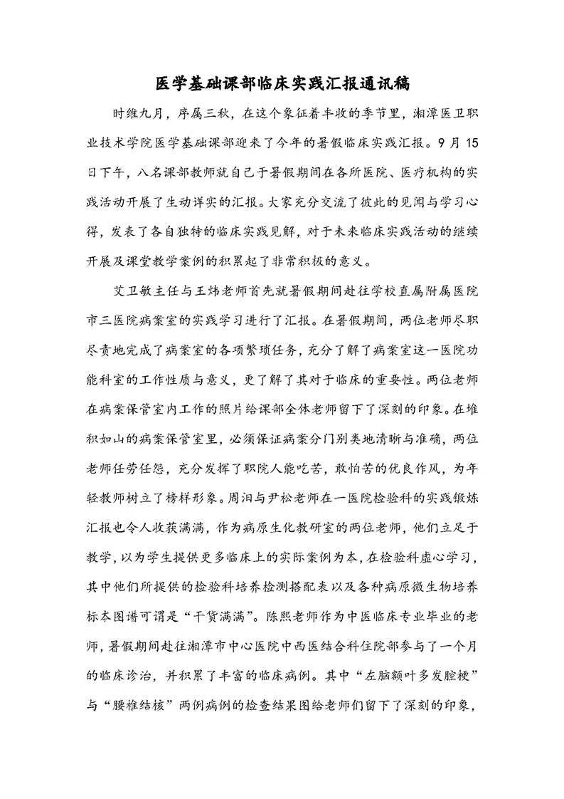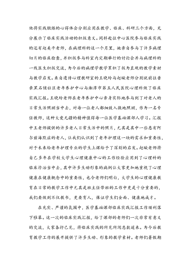 医学基础课部临床实践锻炼汇报交流