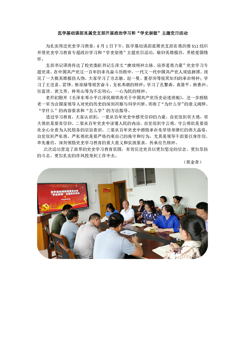 医学基础课部直属党支部开展政治学习和“学史崇德”主题党日活动