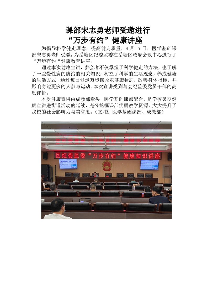 课部宋志勇老师受邀进行“万步有约”健康讲座