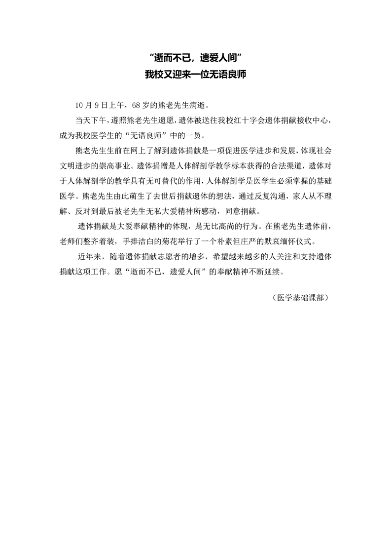 “逝而不已,遗爱人间”我校又迎来一位无语良师
