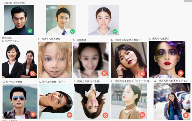 6.照片中人脸姿态必须端正,侧脸角度不能过大,以正脸照为佳。