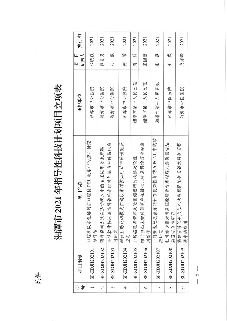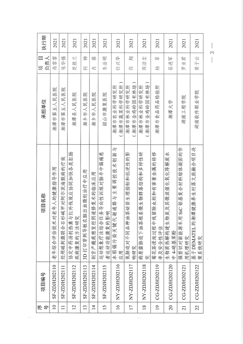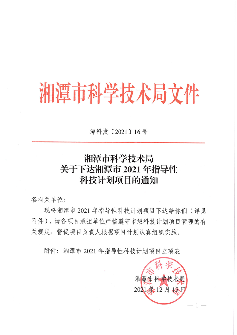转发:湘潭市科技局关于下达湘潭市2021年指导性科技计划项目通知