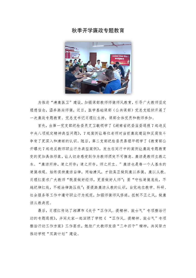 秋季开学廉政专题教育