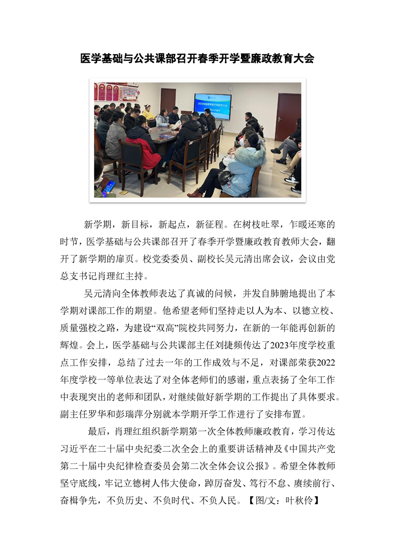 医学基础与公共课部召开春季开学暨廉政教育大会