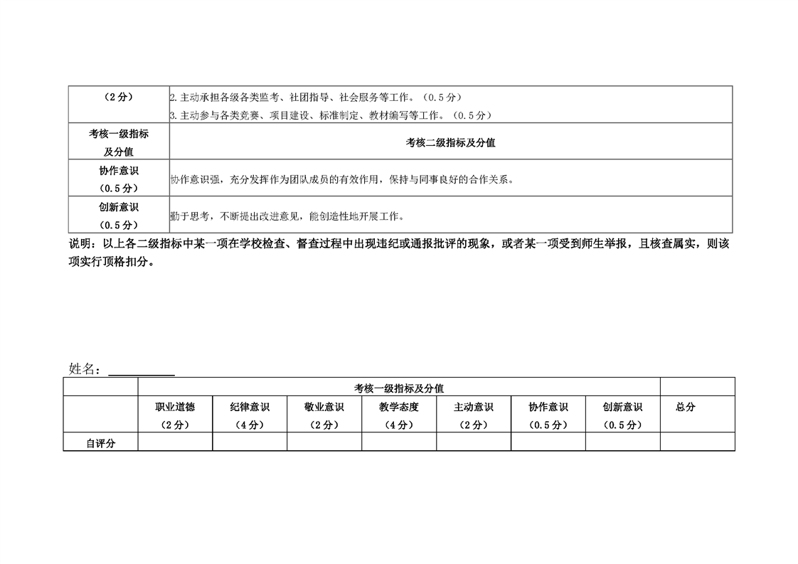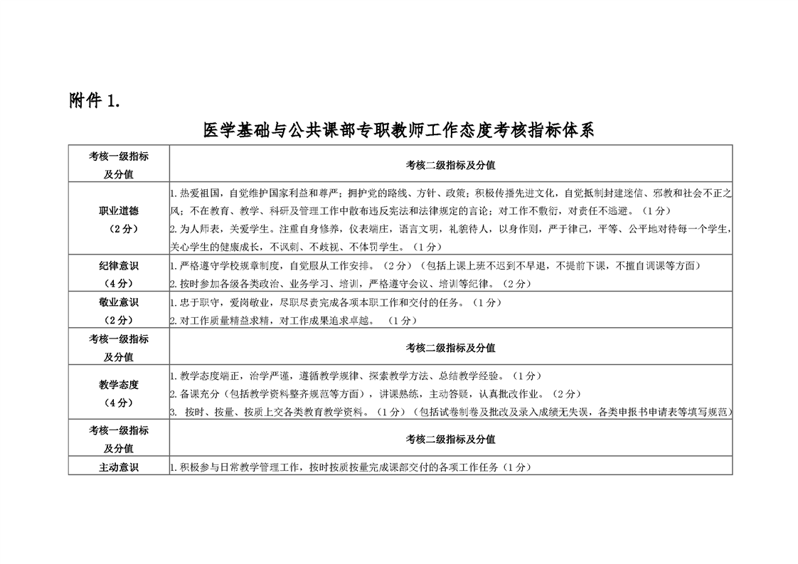 医学基础与公共课部专任教师工作态度考核自评表