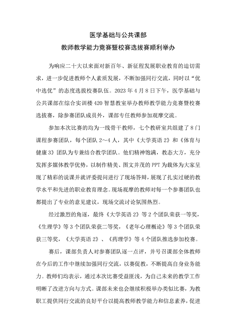 医学基础与公共课部 教师教学能力竞赛暨校赛选拔赛顺利举办