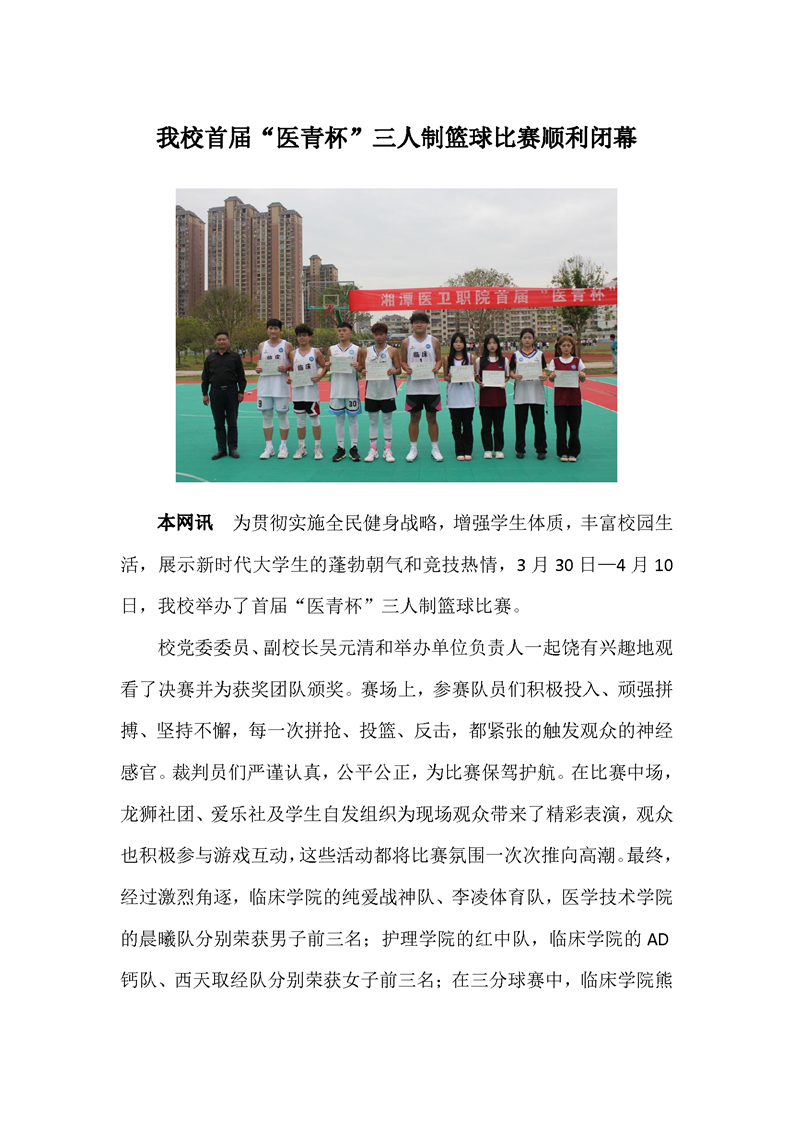 我校首届“医青杯”三人制篮球比赛顺利闭幕