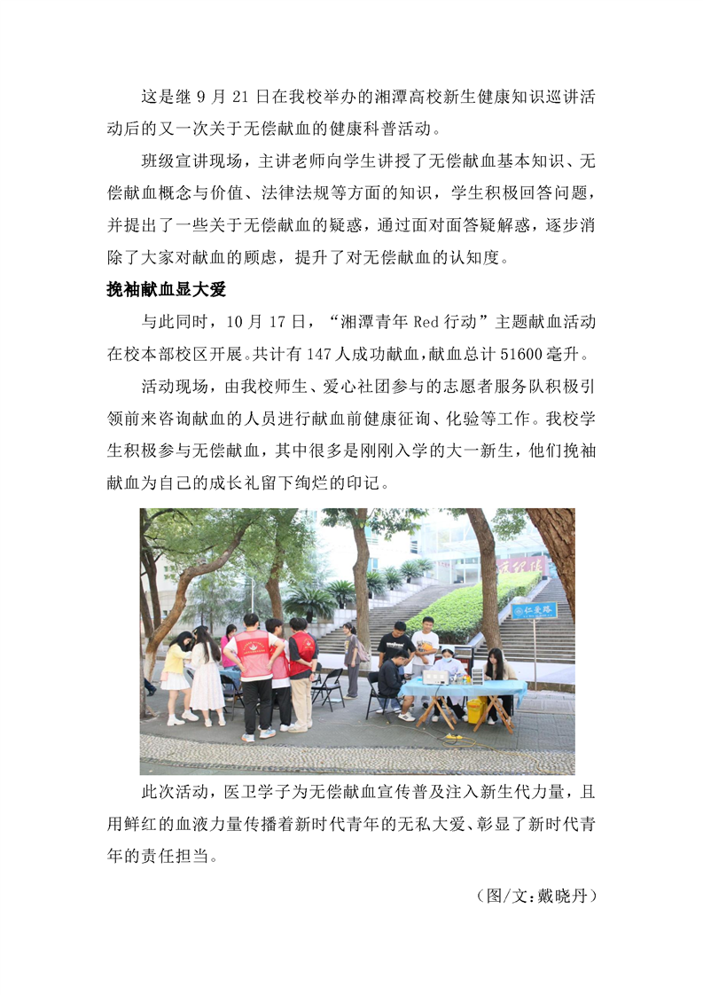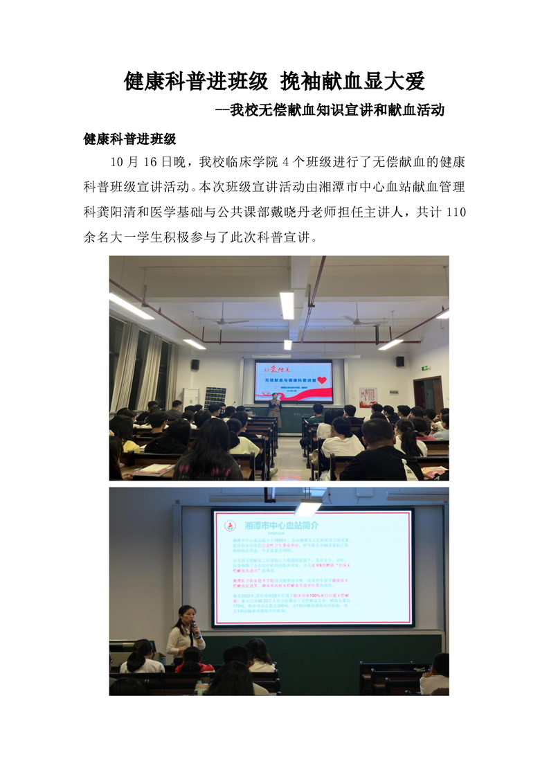 健康科普进班级 挽袖献血显大爱