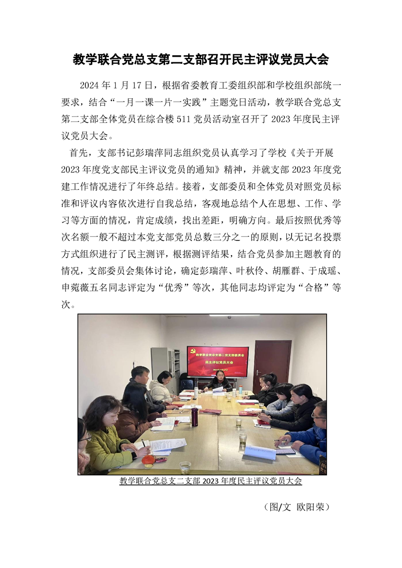 教学联合党总第二支部召开民主评议党员大会