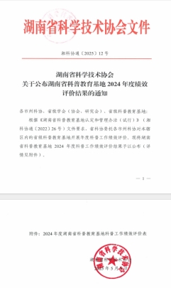 本网讯    近日,湖南省科普教育基地2024年度科普工作绩效评价结果揭晓,通过材料申报以及省科技厅专家组实地考察,我校人体生命科学馆在275个参评基地中脱颖而出,荣获优秀等次。