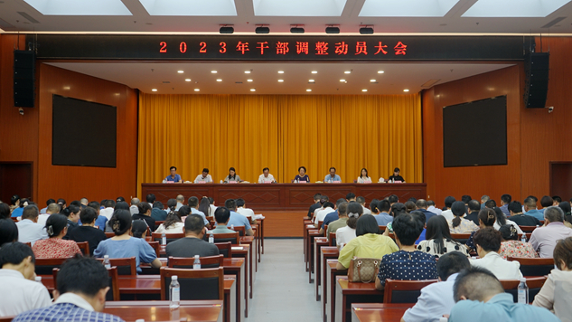 本网讯   6月19日,我校在综合楼一报告厅召开2023年干部调整动员大会。校党委书记刘建强作动员讲话,校长廖晓燕主持,党委副书记何文波作方案解读。全体校领导、全体副科(含)以上干部、副高(含)以上职称教师、人大代表、政协委员、民主党派支部主委等参加会议。