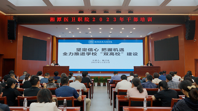 本网讯  11月3日,我校召开2023年干部培训班第三次集中学习会。副校长杨卫东作专题辅导报告,校党委副书记何文波主持会议。全体在家校领导、附属医院班子成员及副科以上干部参加。