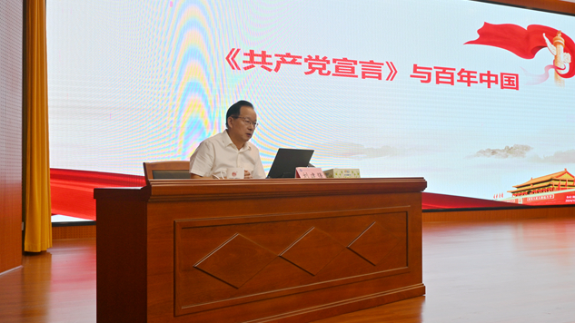 开班仪式结束后,刘建强以《<共产党宣言>与百年中国》为题进行授课。全体在家校领导、中层干部、附属医院班子成员以及“概论课”专兼职教师现场聆听。刘书记从《共产党宣言》在中国的传播、《共产党宣言》的主要内容、《共产党宣言》的中国价值三个方面深入浅出地阐述了《共产党宣言》对中华民族的百年命运产生的深刻影响。刘建强指出,《共产党宣言》对几代中国共产党人的成长发挥了重要作用,是中国共产党人推动新时代中国特色社会主义事业发展的强大动力,马克思主义为中国革命、建设、改革提供了强大思想武器,建设中国特色社会主义理论体系与《共产党宣言》既一脉相承又与时俱进。