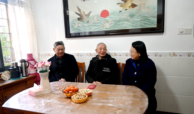 1月11日,校长廖晓燕、副校长吴元清在离退休办负责人等的陪同下,看望慰问退休校领导、老干部和部分生活困难党员,提前向他们致以节日的问候和新春的祝福。